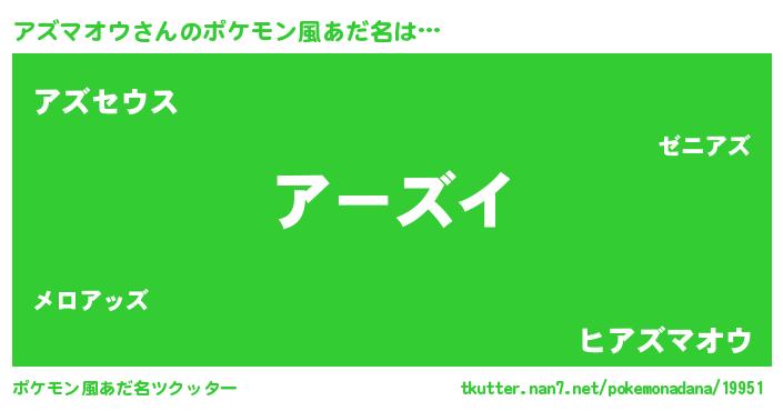 | 男性向けラノベタイトル風あだ名 | 『魔弾の王とアズマオウ』 |