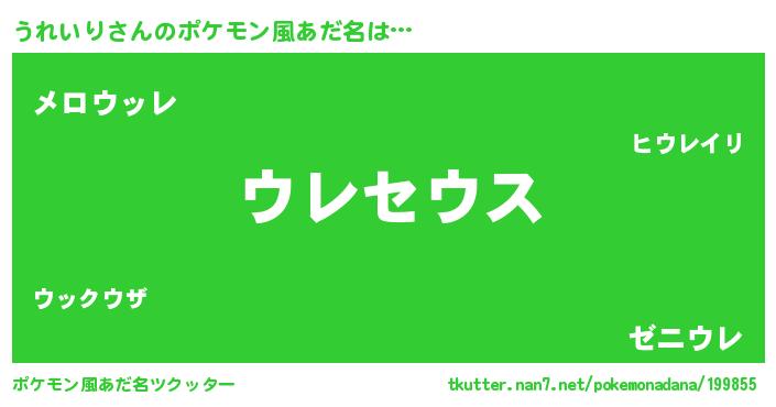 | 男性向けラノベタイトル風あだ名 | 『Re:うれいりから始める異世界生活』 |