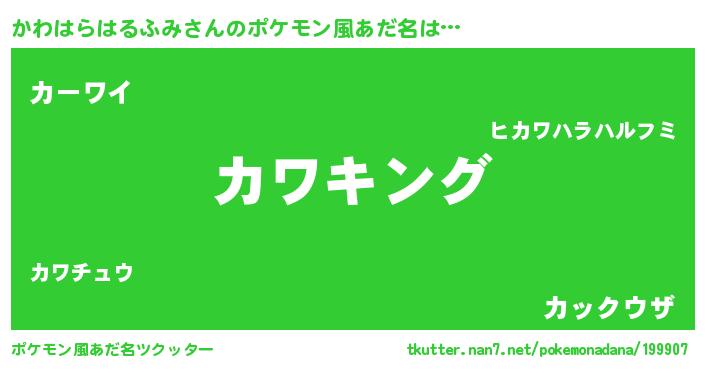 | ヘコむあだ名 | 『かわを』『かわっふぃ~』『つくし』 |