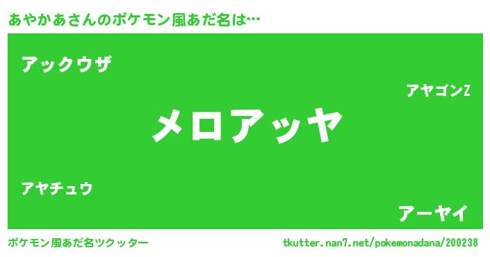 | 欧米人風あだ名 | 『あやかあ・ステッグマイヤー』 |