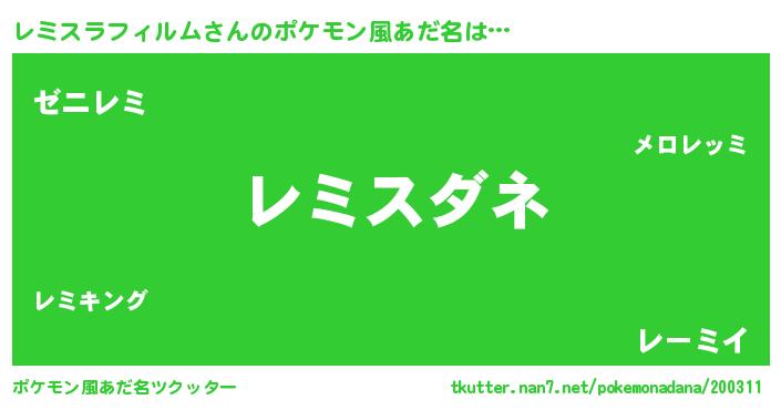 | 意味不明あだ名 | 『レミスラフィルムフォーエバー』 |
