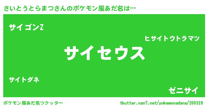 | 男性向けラノベタイトル風あだ名 | 『Re:さいとうとらまつから始める異世界生活』 |