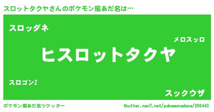 | 料理風あだ名 | 『スロットタクヤの豆乳スープ』 |