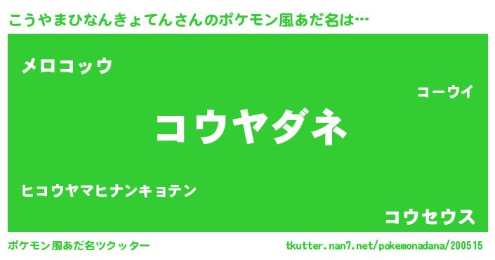 | 欧米人風あだ名 | 『こうやまひなんきょてんクリステル』 |