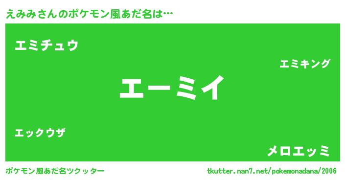 | 男性向けラノベタイトル風あだ名 | 『魔弾の王とえみみ』『えみみの憂鬱』 |