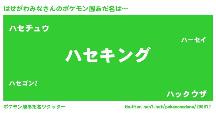 | 意味不明あだ名 | 『なめこ科はせがわみな属』 |