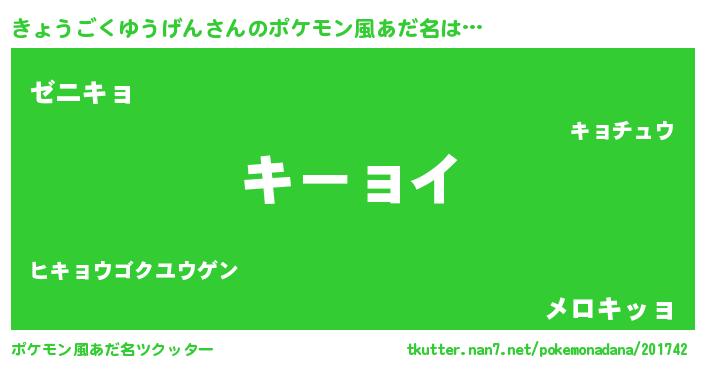 | 意味不明あだ名 | 『住所不定無職きょうごくゆうげん(8歳)』 |