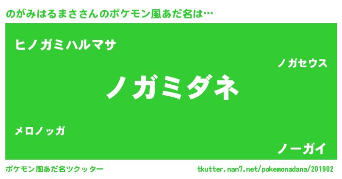 | 意味不明あだ名 | 『のがみはるまさフォーエバー』 |