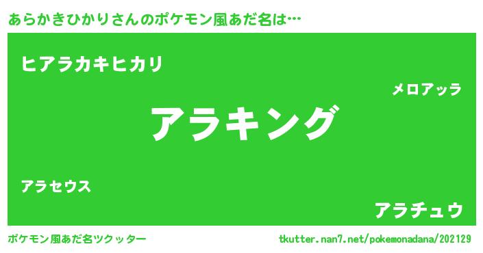| 男性向けラノベタイトル風あだ名 | 『あらかきひかり~年齢イコール彼女いない歴の魔法使い~』 |