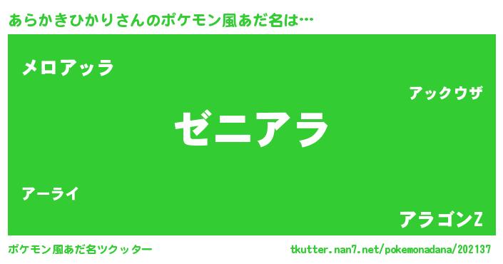 | ヘコむあだ名 | 『あらかきひかり(震え声)』『あら太郎』 |