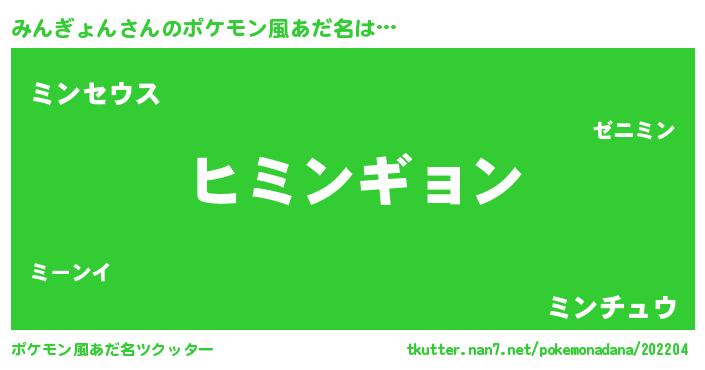 | 意味不明あだ名 | 『とにかく怪しいみんぎょん』 |