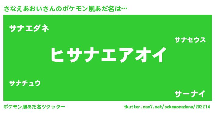 | 欧米人風あだ名 | 『ウサインさなえあおい』 |
