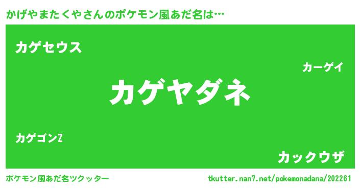 | 欧米人風あだ名 | 『かげやまたくやクリステル』 |