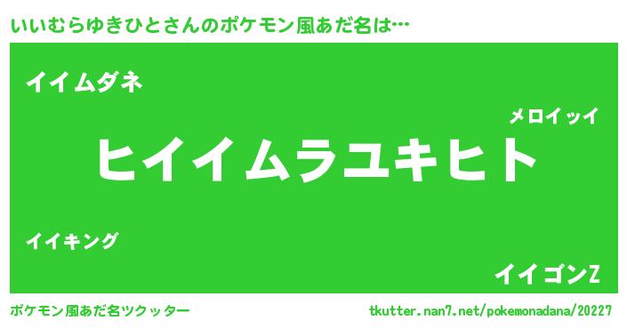 | 男性向けラノベタイトル風あだ名 | 『いいむらゆきひとの嫁は女の子じゃないと思った?』 |