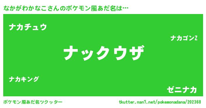 | 女子向けラノベタイトル風あだ名 | 『なかがわかなこ恋絵巻』 |