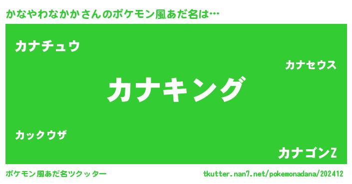 | 男性向けラノベタイトル風あだ名 | 『かなやわなかか~年齢イコール彼女いない歴の魔法使い~』 |