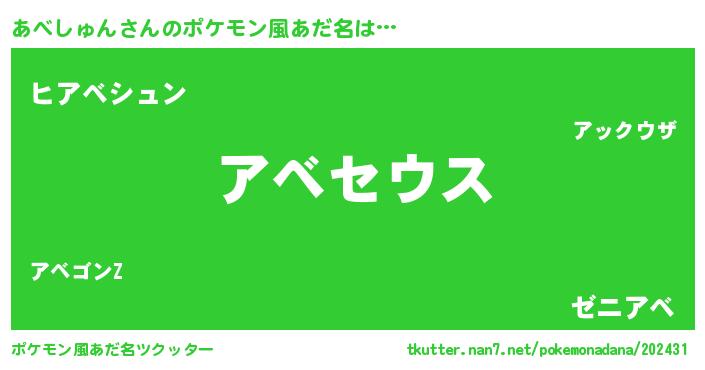 | 意味不明あだ名 | 『自称あべしゅん』『永久保存あべしゅん』 |