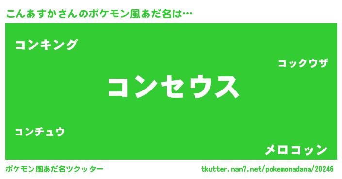 | 男性向けラノベタイトル風あだ名 | 『Re:こんあすかから始める異世界生活』 |