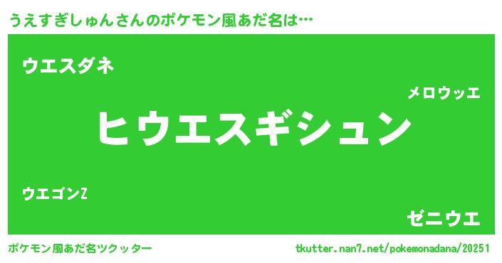 | 男性向けラノベタイトル風あだ名 | 『ダンジョンにうえすぎしゅんを求めるのは間違っているだろうか』 |