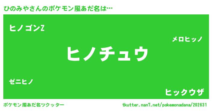 | 男性向けラノベタイトル風あだ名 | 『ヒノミヤアートオンライン』 |