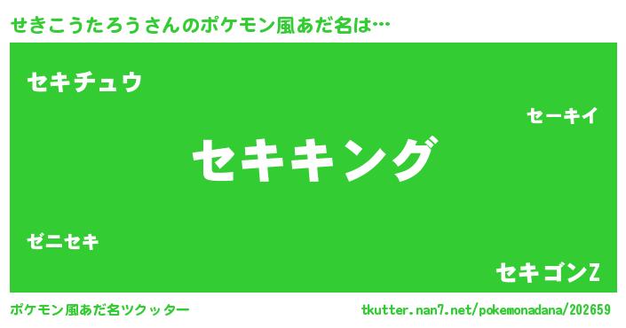 | 男性向けラノベタイトル風あだ名 | 『せきこうたろう~年齢イコール彼女いない歴の魔法使い~』 |