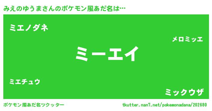 | 意味不明あだ名 | 『住所不定無職みえのゆうま(7歳)』 |