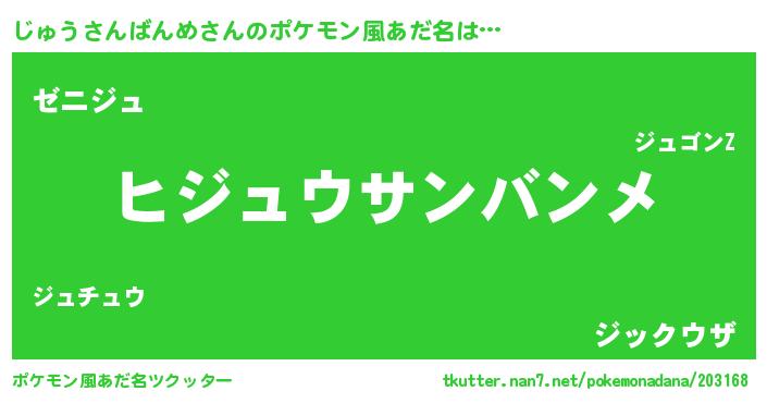 | ヒーロー風カッコイイあだ名 | 『暗黒騎士ジュ』『ネオジュウサンバンメ』 |