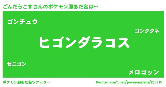 | ピコ太郎風あだ名 | 『ゴン十郎』『ゴコ史郎』『ピゴ四郎』 |