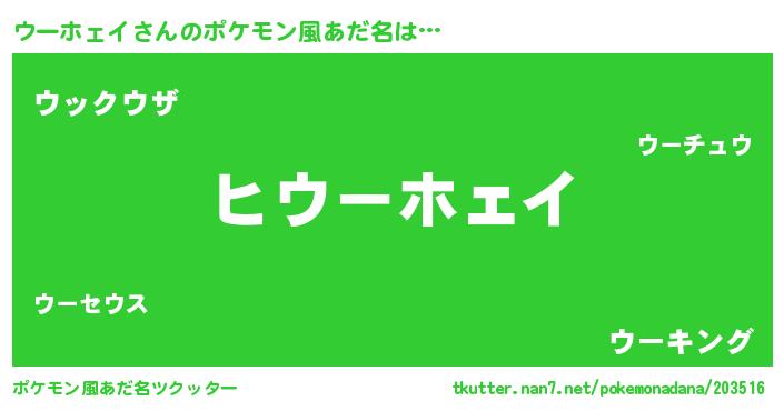 | 欧米人風あだ名 | 『ウサインウーホェイ』 |