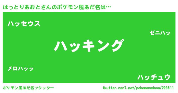 | 男性向けラノベタイトル風あだ名 | 『ハットリアオトスレイヤー』 |