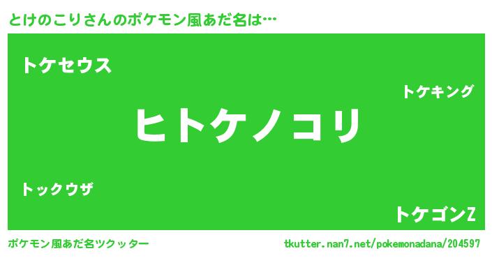 | ヒーロー風カッコイイあだ名 | 『天弓騎士トケ』『究極戦士トケノコリ』 |
