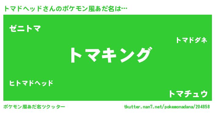 | 男性向けラノベタイトル風あだ名 | 『トマドヘッド~年齢イコール彼女いない歴の魔法使い~』 |