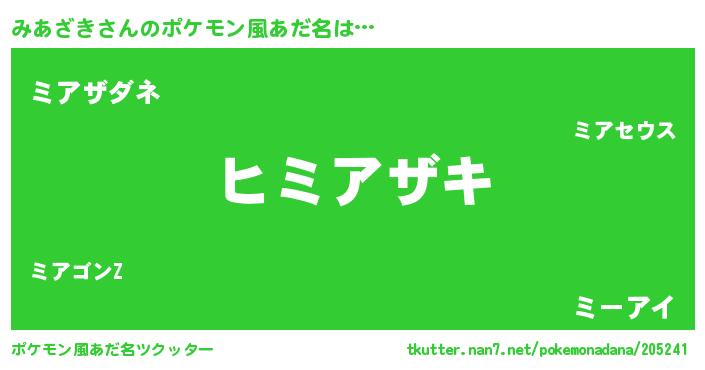 | ヒーロー風カッコイイあだ名 | 『暗黒騎士ミア』『ウルトラみあざきマン』 |