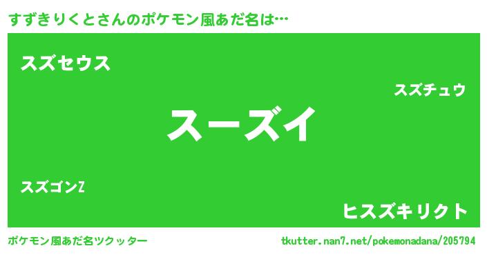 | ヒーロー風カッコイイあだ名 | 『仮面スズダー』『最強戦士スズキリクト』 |
