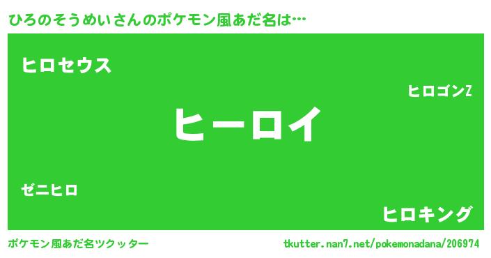 | ヘコむあだ名 | 『ひろのそうめい(遠い目)』『ひろっふぃ~』 |