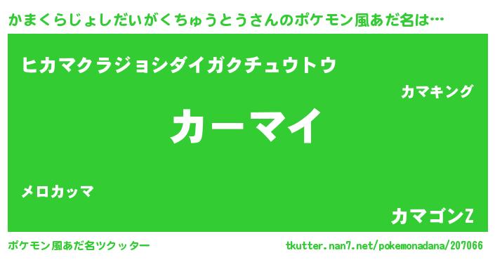 女子向けラノベタイトル風あだ名 | 『かまくらじょしだいがくちゅうとうが死なない童話 林檎のかまくらじょしだいがくちゅうとうの診療簿』 |