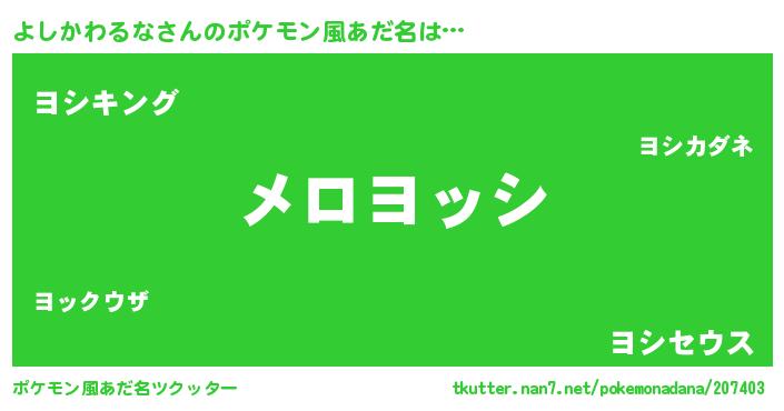 | 欧米人風あだ名 | 『よしかわるな・ステッグマイヤー』 |