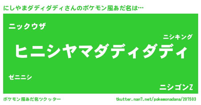 | 男性向けラノベタイトル風あだ名 | 『ダンジョンににしやまダディダディを求めるのは間違っているだろうか』 |