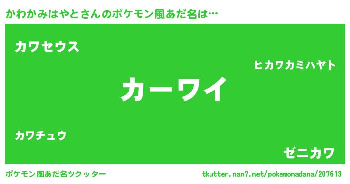 | ヘコむあだ名 | 『かわかみはやと(震え声)』『かわお』 |