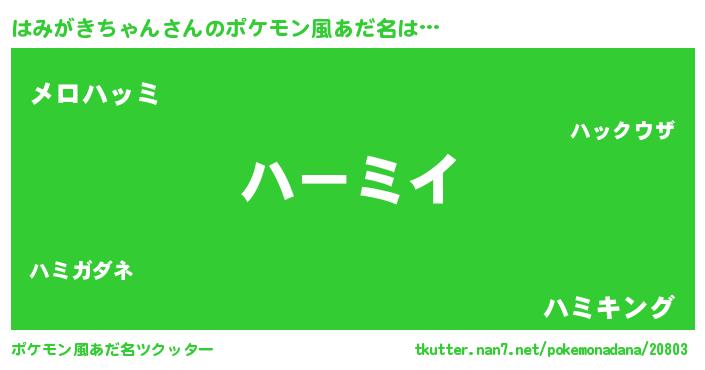 | 意味不明あだ名 | 『住所不定無職はみがきちゃん(8歳)』 |