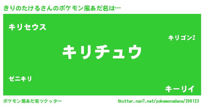 | ヘコむあだ名 | 『きりにゅー』『きりのたける(震え声)』 |