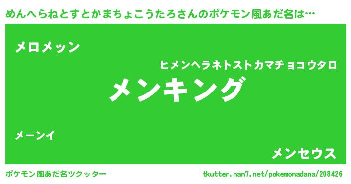 | 欧米人風あだ名 | 『トリンドルめんへらねとすとかまちょこうたろ』 |