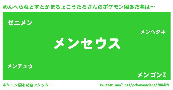 | ヘコむあだ名 | 『めんへらねとすとかまちょこうたろ(遠い目)』 |