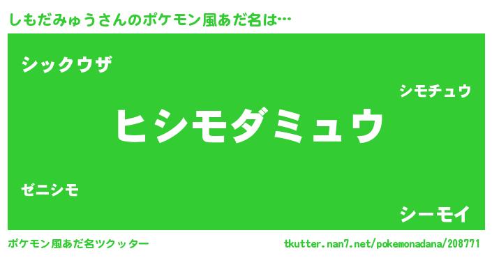 | 意味不明あだ名 | 『とにかく怪しいしもだみゅう』 |