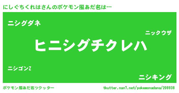 | 欧米人風あだ名 | 『ウサインにしぐちくれは』 |