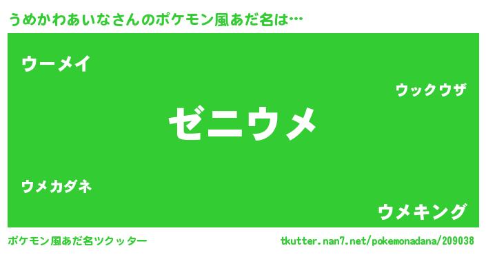 | 意味不明あだ名 | 『永久保存うめかわあいな』 |