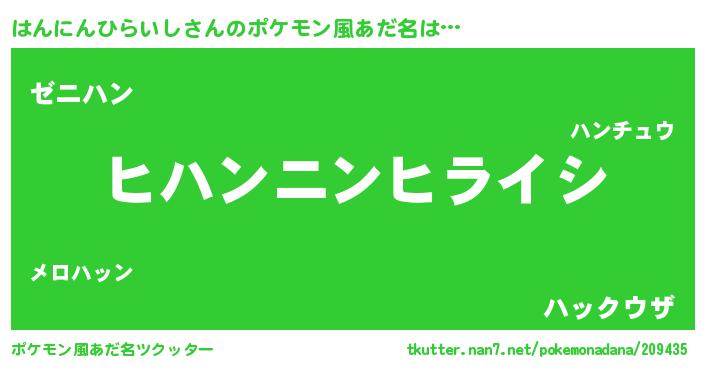 | ヘコむあだ名 | 『はんぷりん』『はんにんひらいし(苦笑)』 |