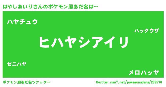 | 男性向けラノベタイトル風あだ名 | 『はやしあいりの嫁は女の子じゃないと思った?』 |