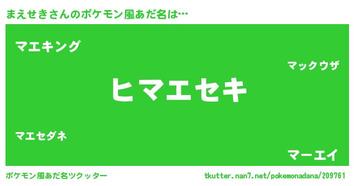 | 意味不明あだ名 | 『とにかく怪しいまえせき』 |