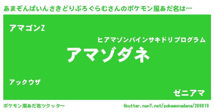 | ファンタジー風あだ名 | 『エターナルアマゾンバインサキドリプログラムー』 |
